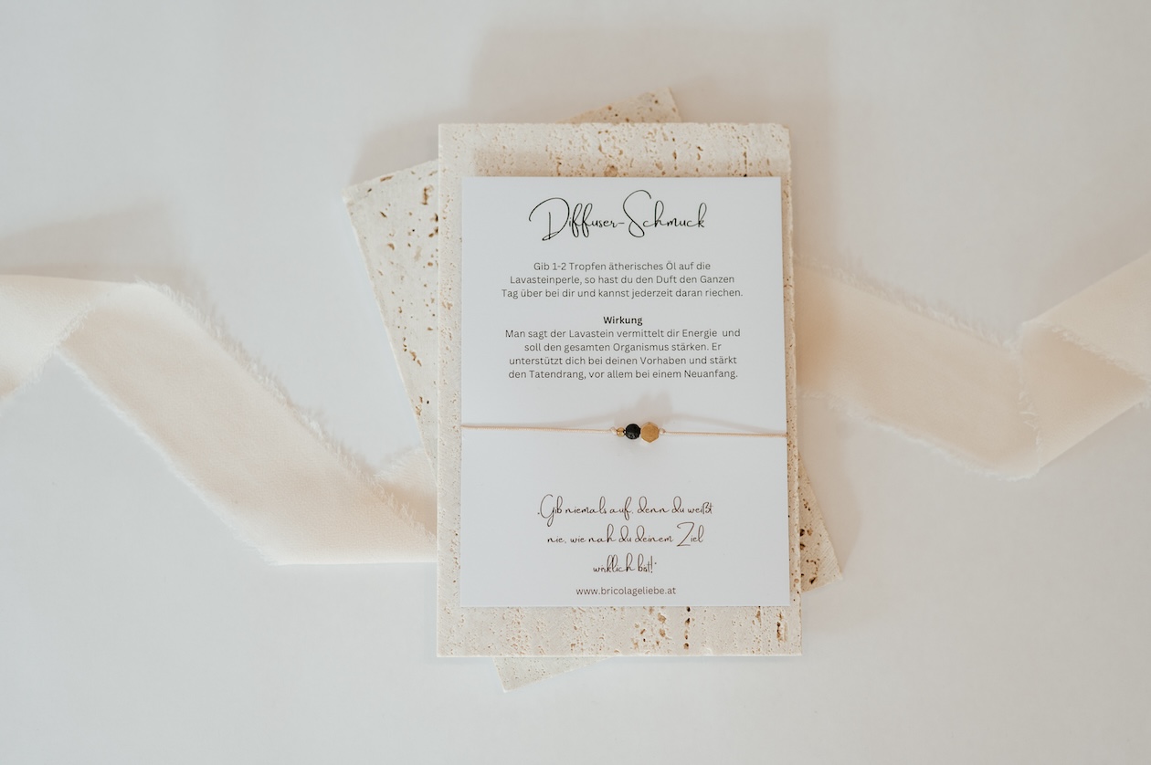Dieses zarte Diffuser-Armband kombiniert dezentes Design mit Funktionalität: Der schwarze Lavastein eignet sich perfekt zum Beduften mit deinem Lieblingsöl – einfach 1–2 Tropfen reines ätherisches Öl auf die Perle geben, und du genießt den Duft den ganzen Tag über.