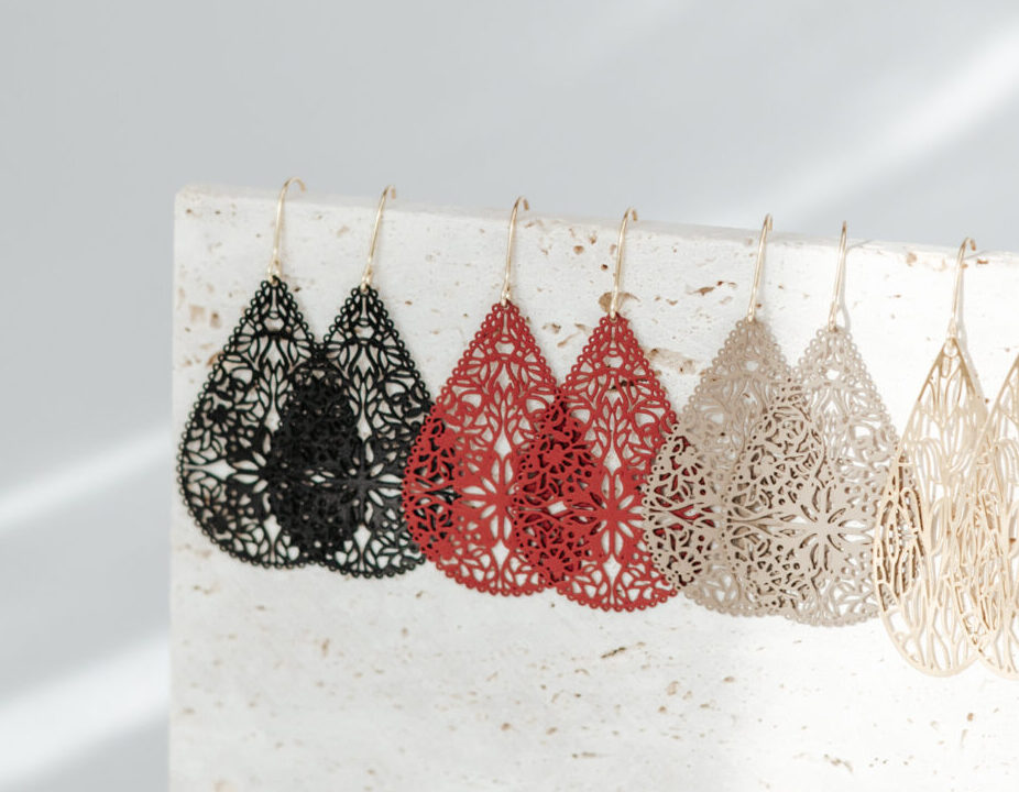Ohrhänger Flower Drop – erhältlich in 3 verschiedenen Farben (beige, weinrot und schwarz)