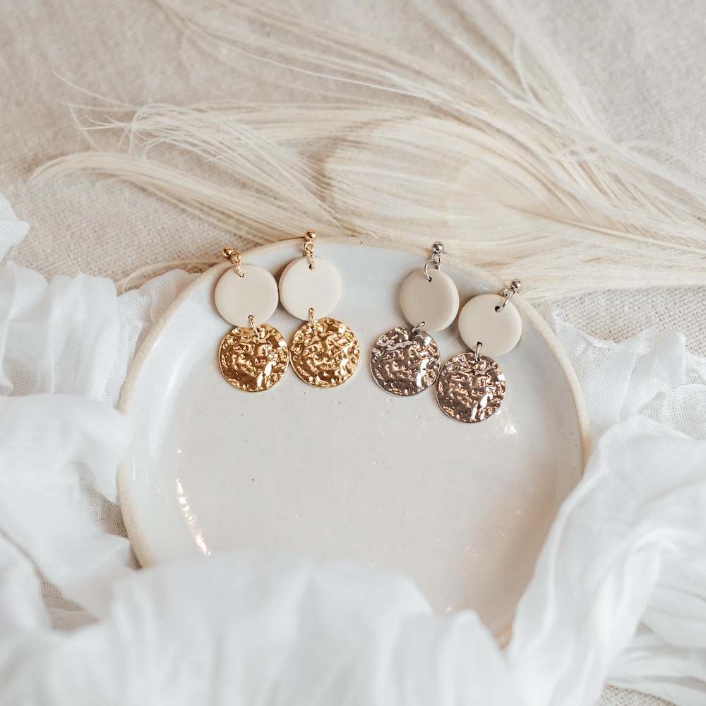 Polymer Clay (oder auch Polymer Ton) ist eine vielseitige Modelliermasse, die sich leicht von Hand formen lässt und anschließend im Ofen aushärtet. Durch diesen Prozess wird er federleicht – selbst größere Ohrringe spürst du kaum – und ist zugleich sehr beständig.Polymer Clay bietet zudem unzählige kreative Möglichkeiten: von verschiedenen Techniken bis hin zu einer riesigen Auswahl an Formen und Texturen. Manche Farben, wie Beige oder PearlGrey, können produktionsbedingt leicht im Farbton variieren.