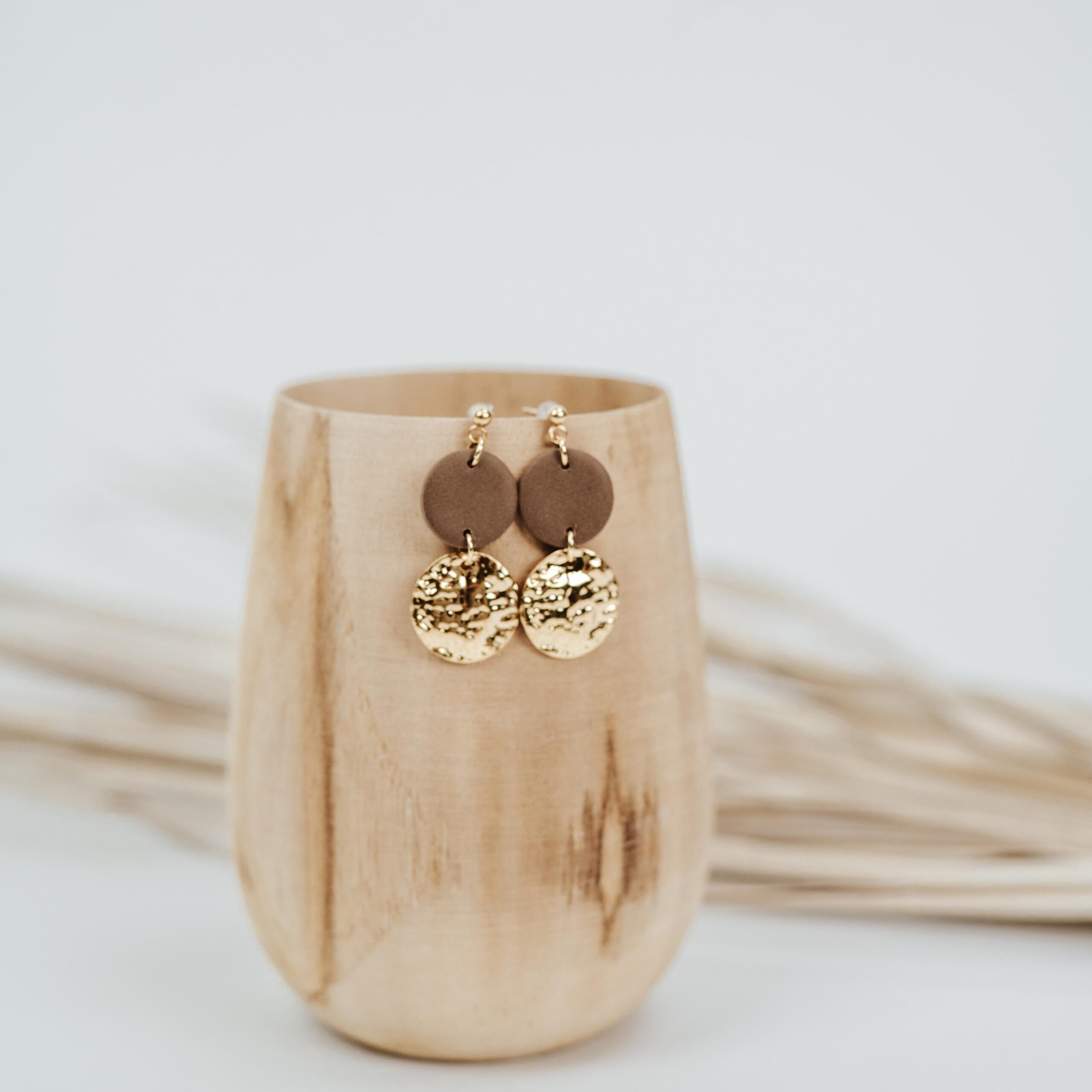 Ohrhänger Kreise – Beige, Braun oder Schwarz – Gold oder Silber