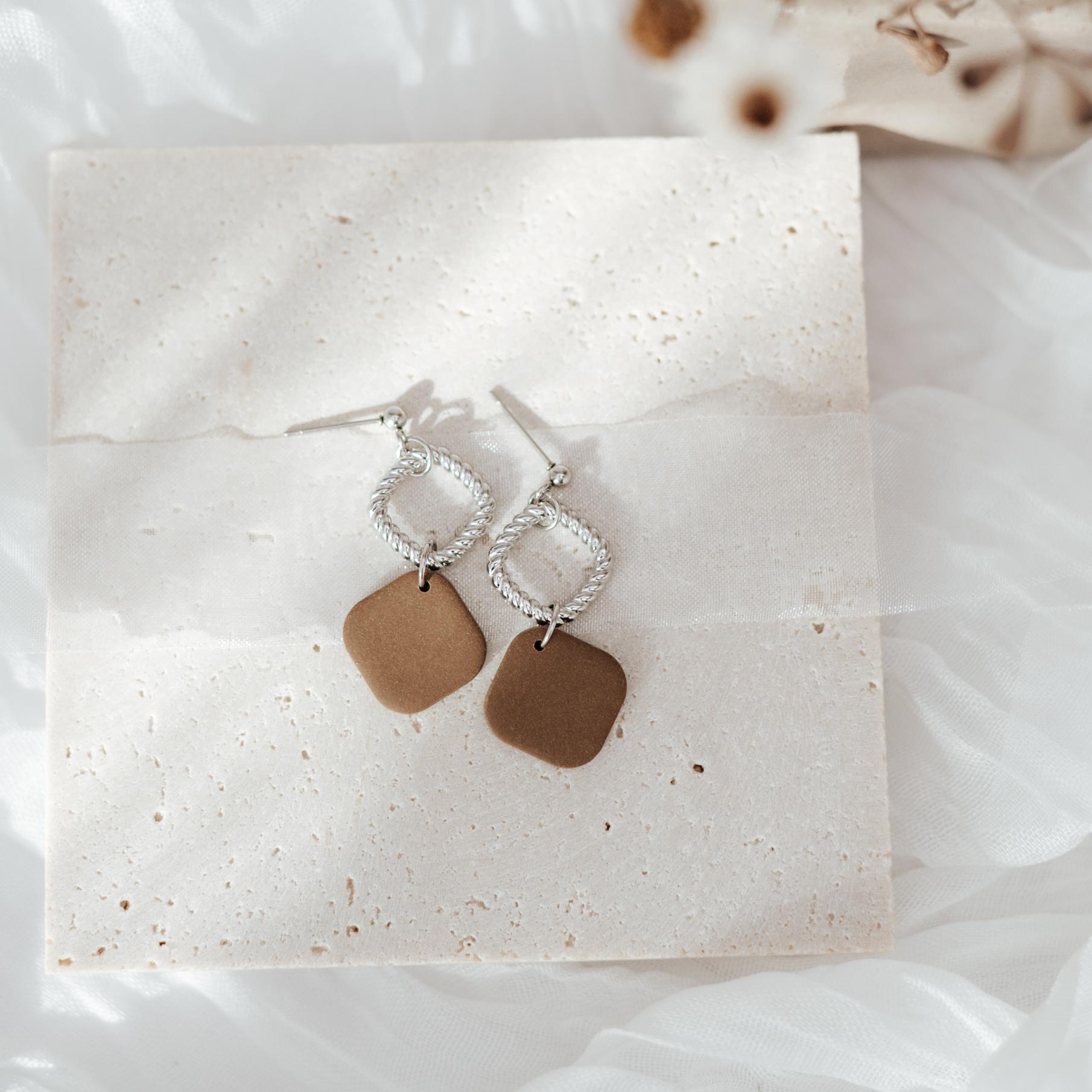 Erhältlich in den Farben Beige, Braun oder Schwarz, lassen sich die Ohrringe vielseitig kombinieren – von minimalistischen Looks bis hin zu eleganten Outfits. Ein modernes Schmuckstück für alle, die klare Formen und dezente Statement-Pieces lieben.