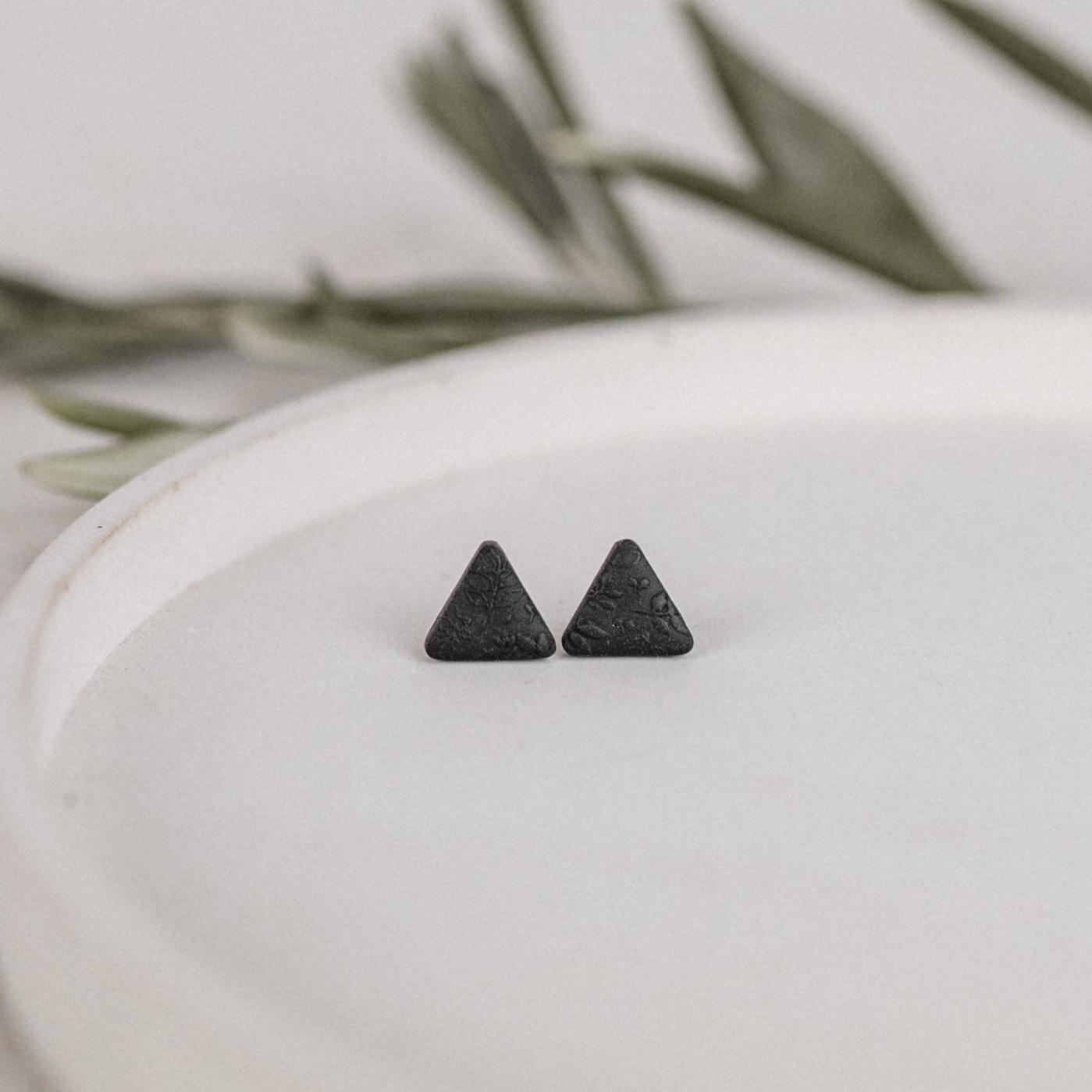 Diese handgefertigten Ohrstecker in elegantem Schwarz vereinen zeitloses Design mit moderner Leichtigkeit. Jeder Stecker wird sorgfältig aus hochwertigem Polymer Clay gefertigt und die Rückseite mit UV-Harz versiegelt.