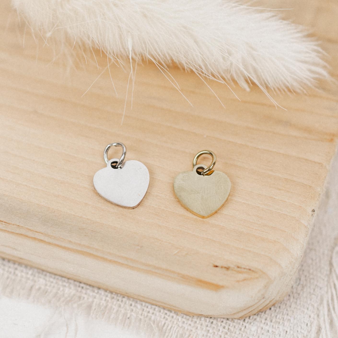 Der Anhänger (Herz ca. 10×13 mm) besteht aus Edelstahl oder Edelstahl vergoldet und wird mit höchster Präzision graviert.