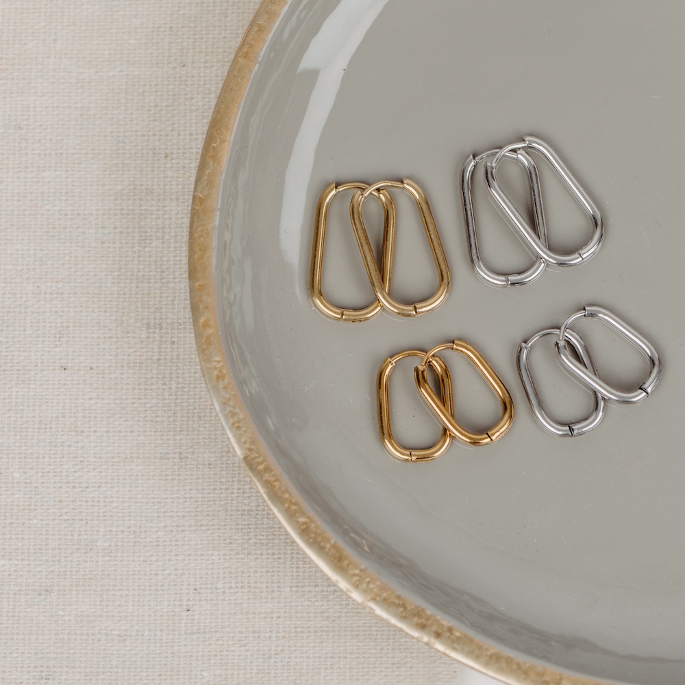 Rechteckige Creolen – Edelstahl – Silber oder 24k Vergoldet